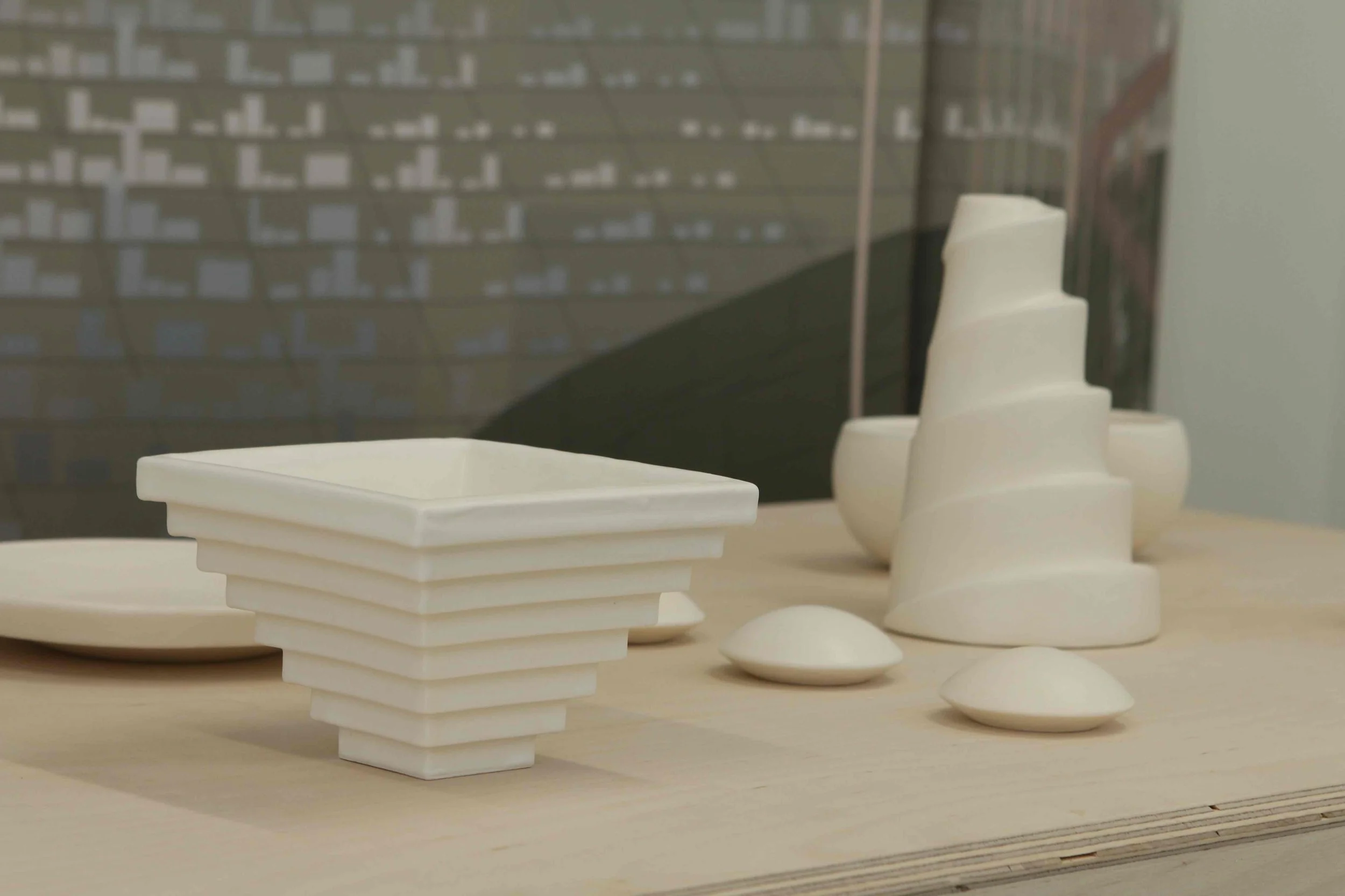 These pieces were 3d printed and glazed at Boston Ceramics in 2017.